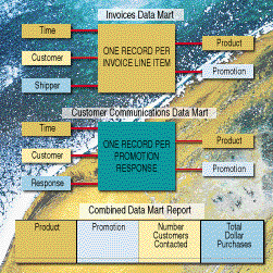 Step 1: Choosing the Process. By "process" I mean the subject matter of a particular data mart. The first data mart you build should be the one with the most bang for the buck. It should simultaneously answer the most important business questions and be the most accessible from a data extraction point of view. A great place to start in most enterprises is to build a data mart that consists of customer invoices or monthly statements. (See Figure 1.) This data source is probably fairly accessible and of fairly high quality. One of Kimball's laws is that the best data source in any enterprise is the record of How Much Money They Owe Us. Unless costs and profitability are easily available before the data mart is even designed, it's best to avoid adding these items to this first data mart. Nothing drags down a data mart implementation faster than a heroic or impossible mission to provide activity-based costing as part of the first deliverable.