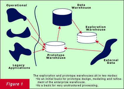 When the exploration warehouse is used in a prototype mode, it serves as a "trial balloon" for the testing of the initial design of the data warehouse. In this case, the designer is interested in examining and probing what data and what relationships are in (or are going to be in) the warehouse. The nature of the prototype warehouse in this mode is one that allows an enterprise warehouse to be constructed and reconstructed quickly when the designer finds data that is not quite right or that there are relationships that just don't add up.