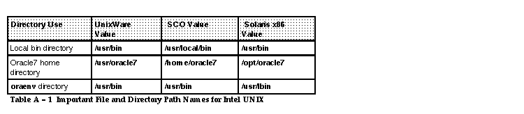 The following table shows the directory locations of important files and directories on each of the supported Intel UNIX platforms.